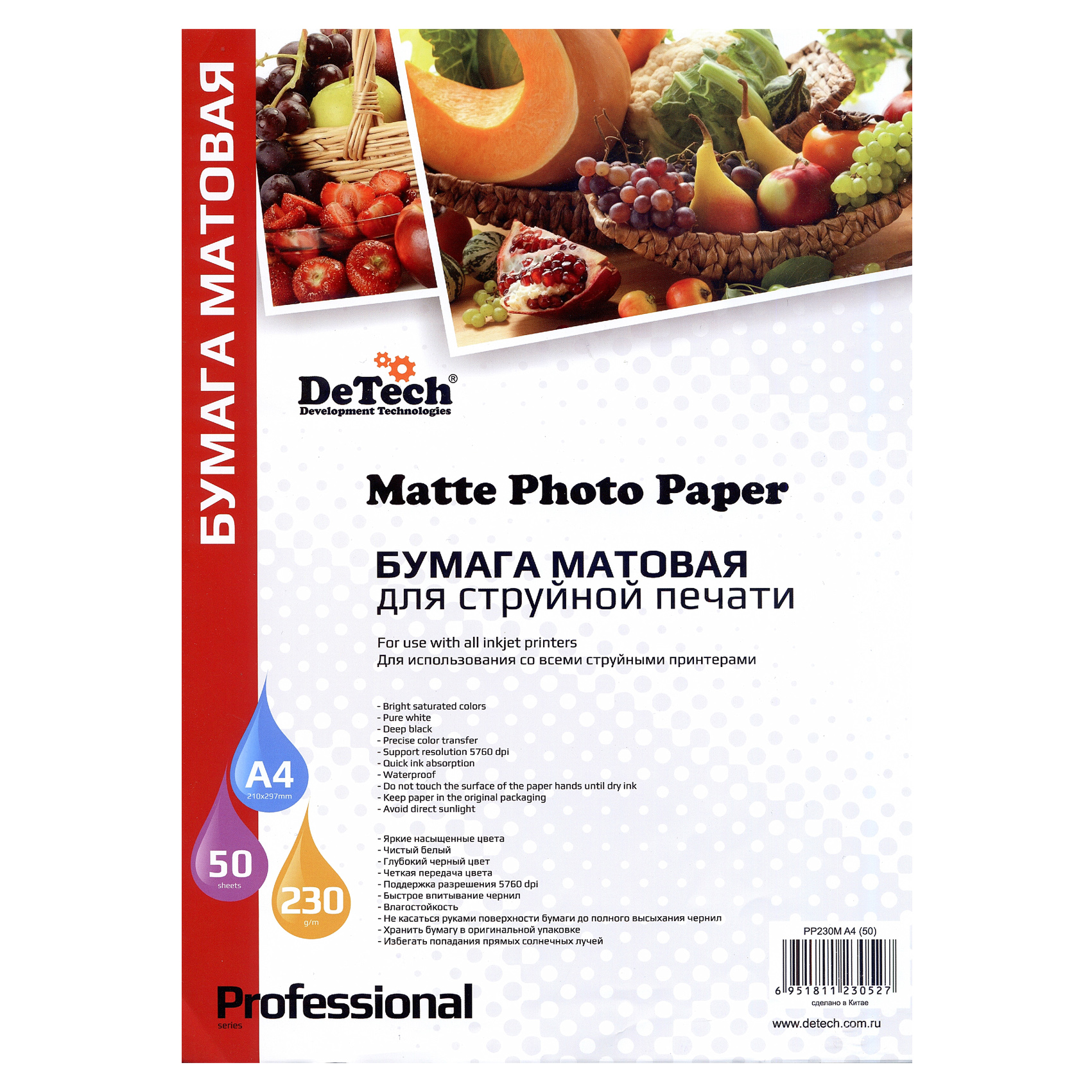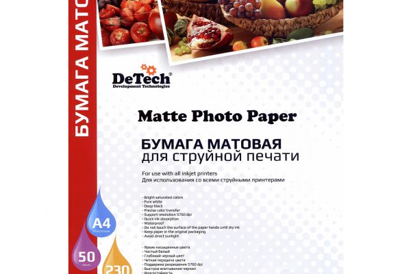 Фотобумага DeTech 230gm2, matte, A4, 50л (PP230M A4 50)