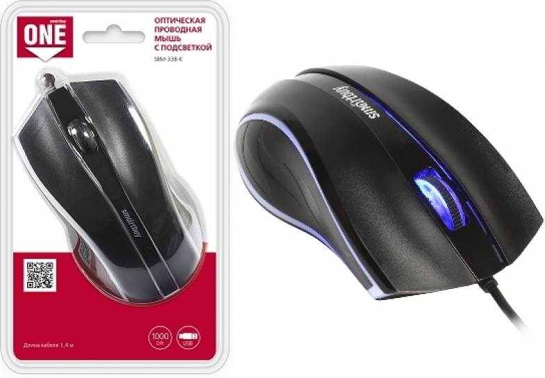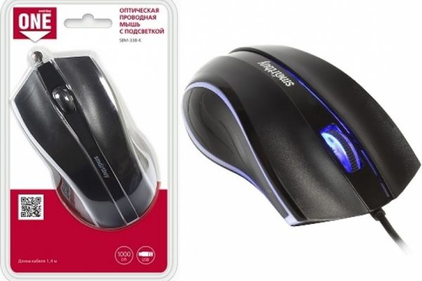 Мышь проводная SmartBuy 338 ONE USB черная с подсеткой (SBM-338-K)/40