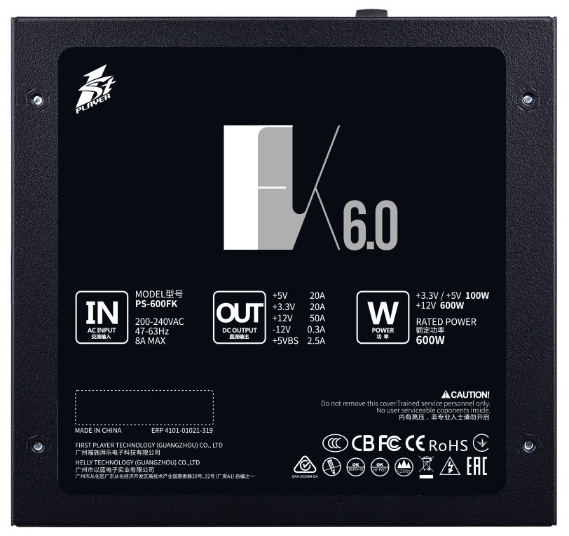 Блок питания для ПК 600w 1STPLAYER PS-600FK ATX 2.4, APFC, 120mm fan