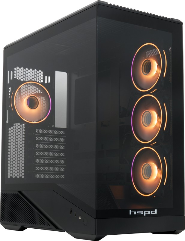 Корпус HSPD F711 (F711-TGBK- ARGB), без БП, Panoramic Full Tower, 4x120mm ATX